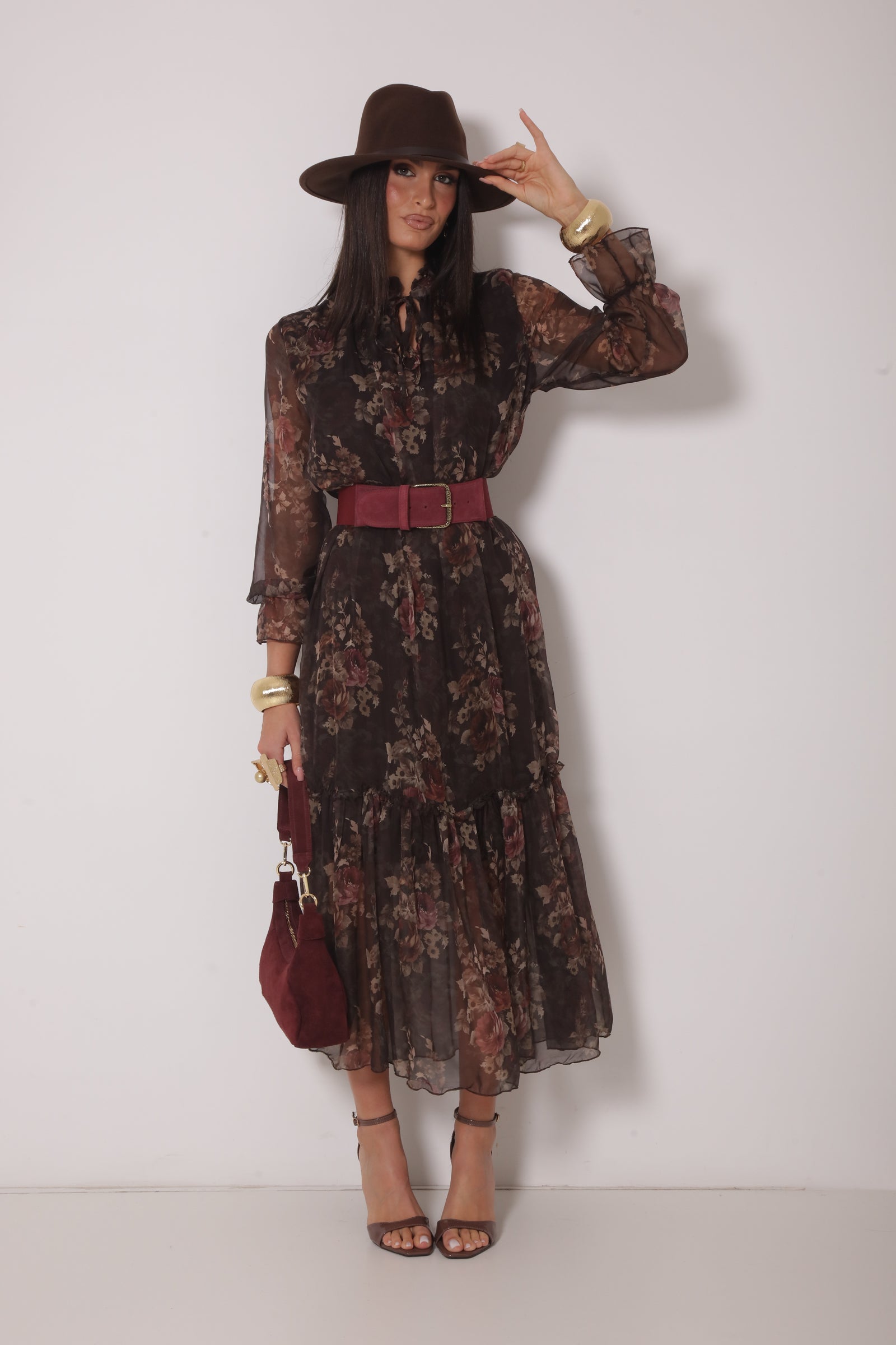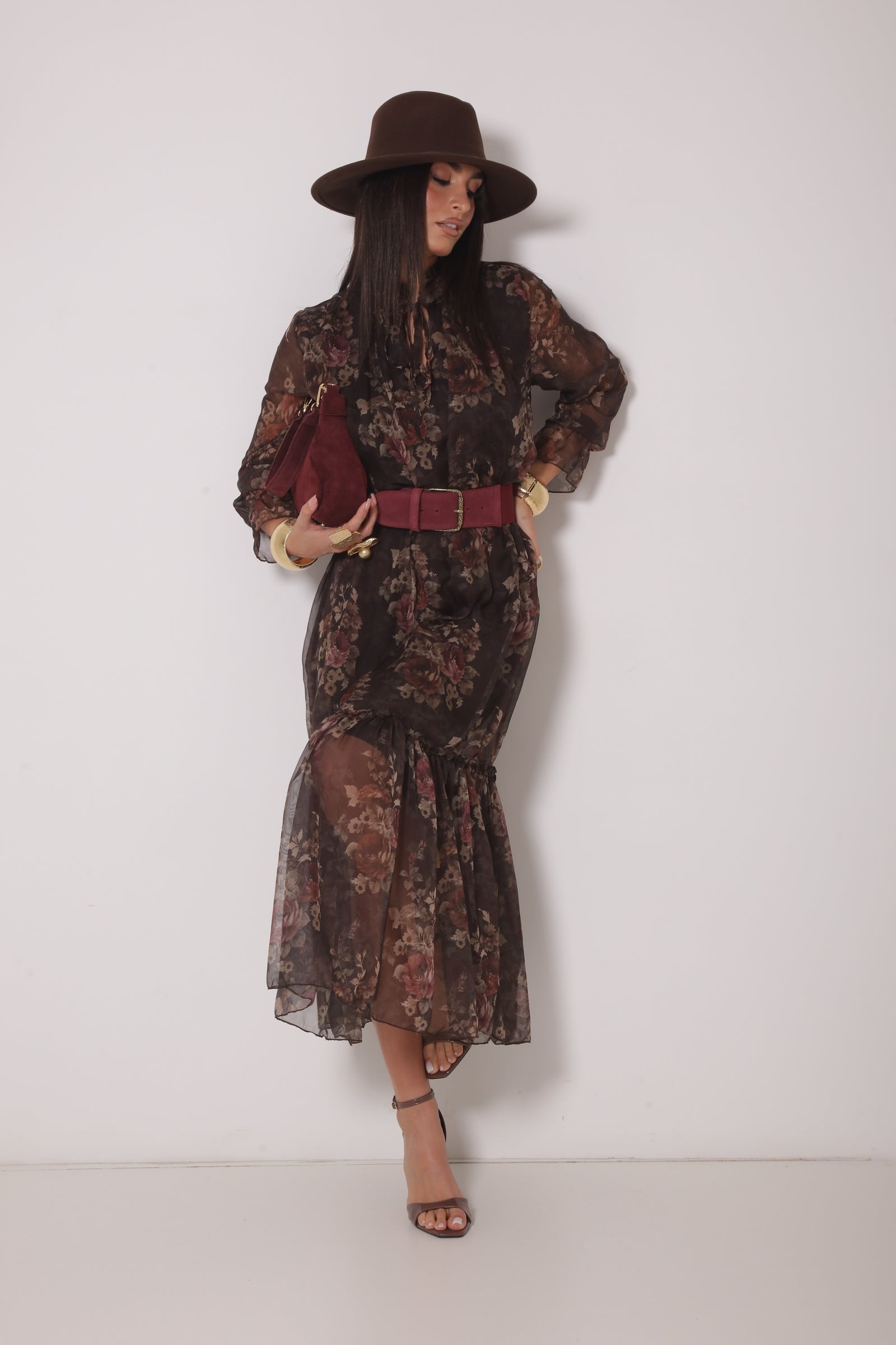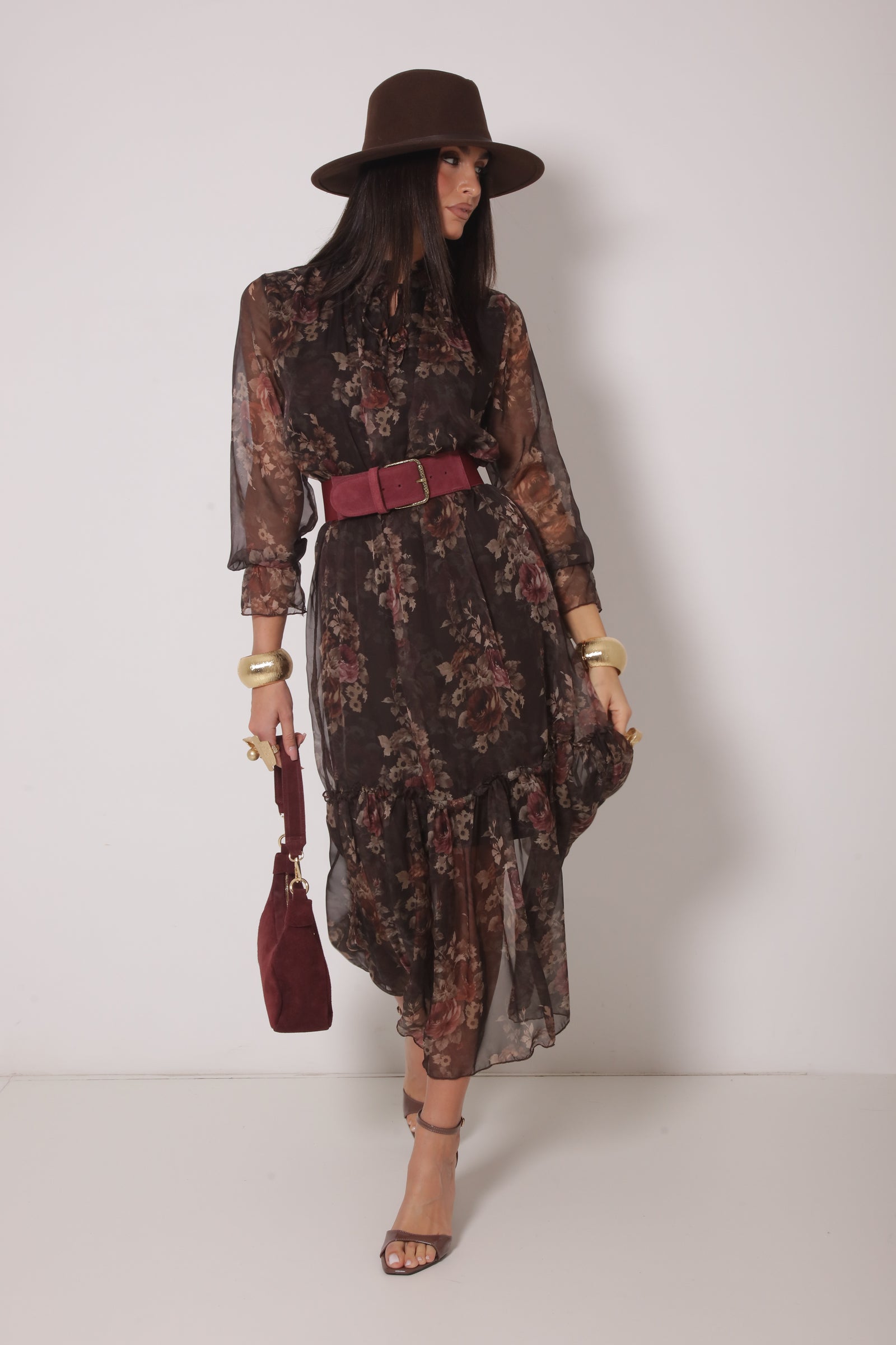 Abito Lungo Fiori Testa Di Moro