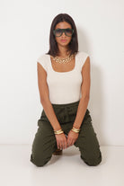 Canotta Scollo Quadrato Gesso