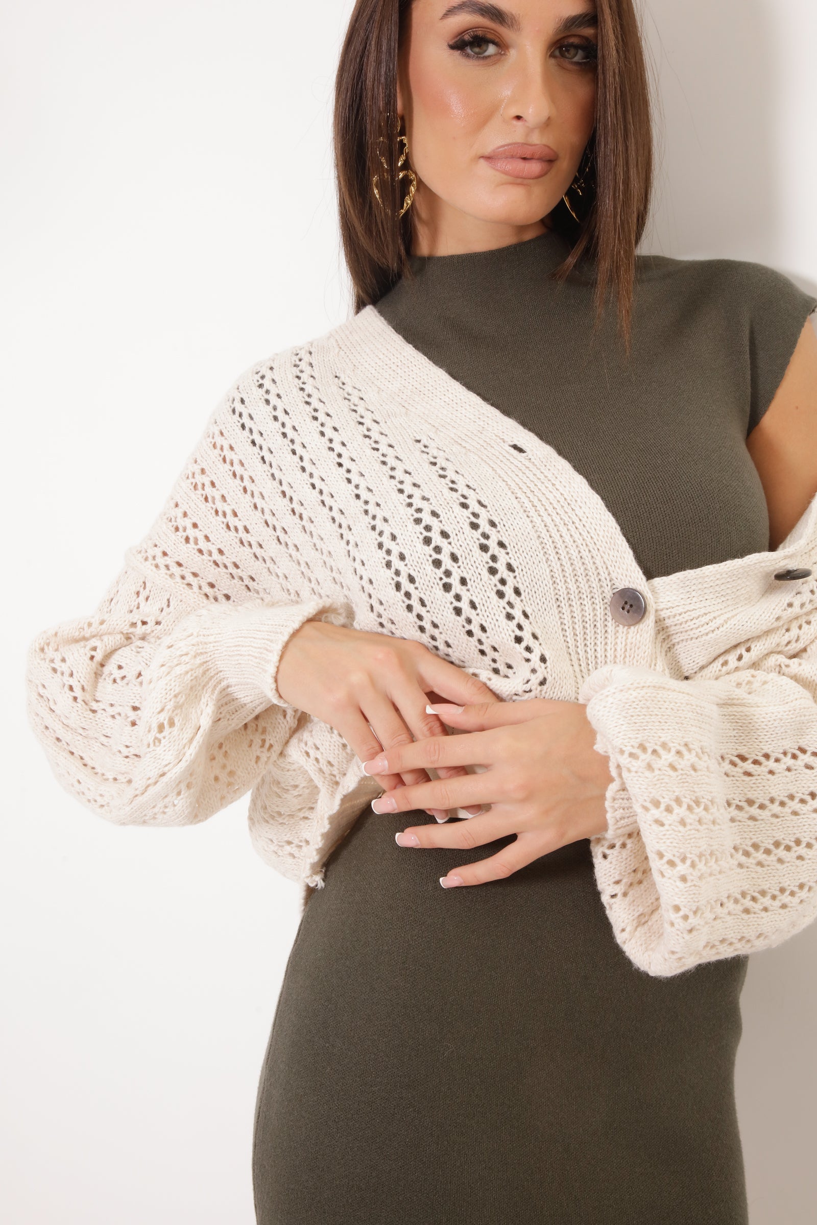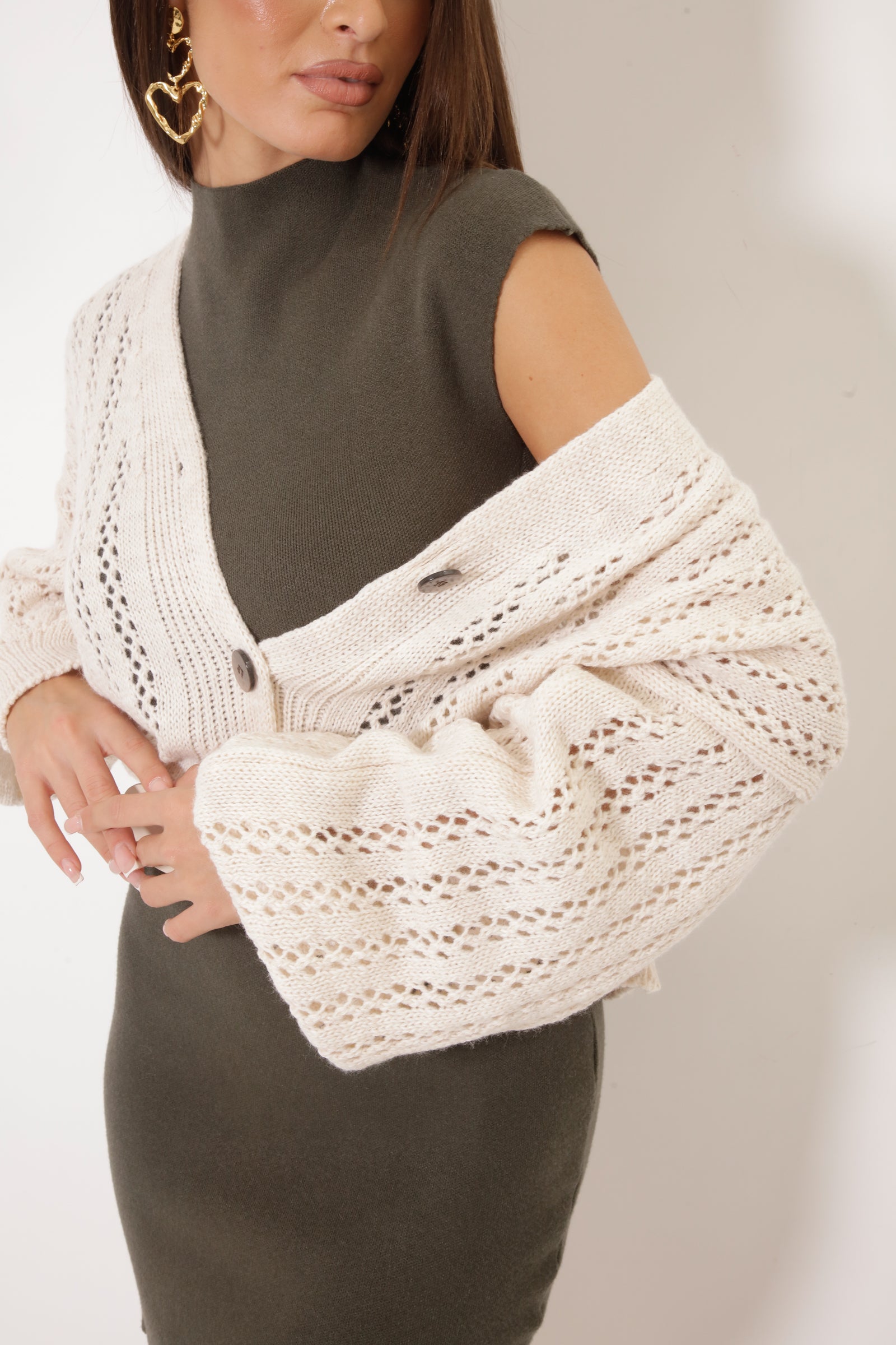 Cardigan Traforato 3 Bottoni Gesso