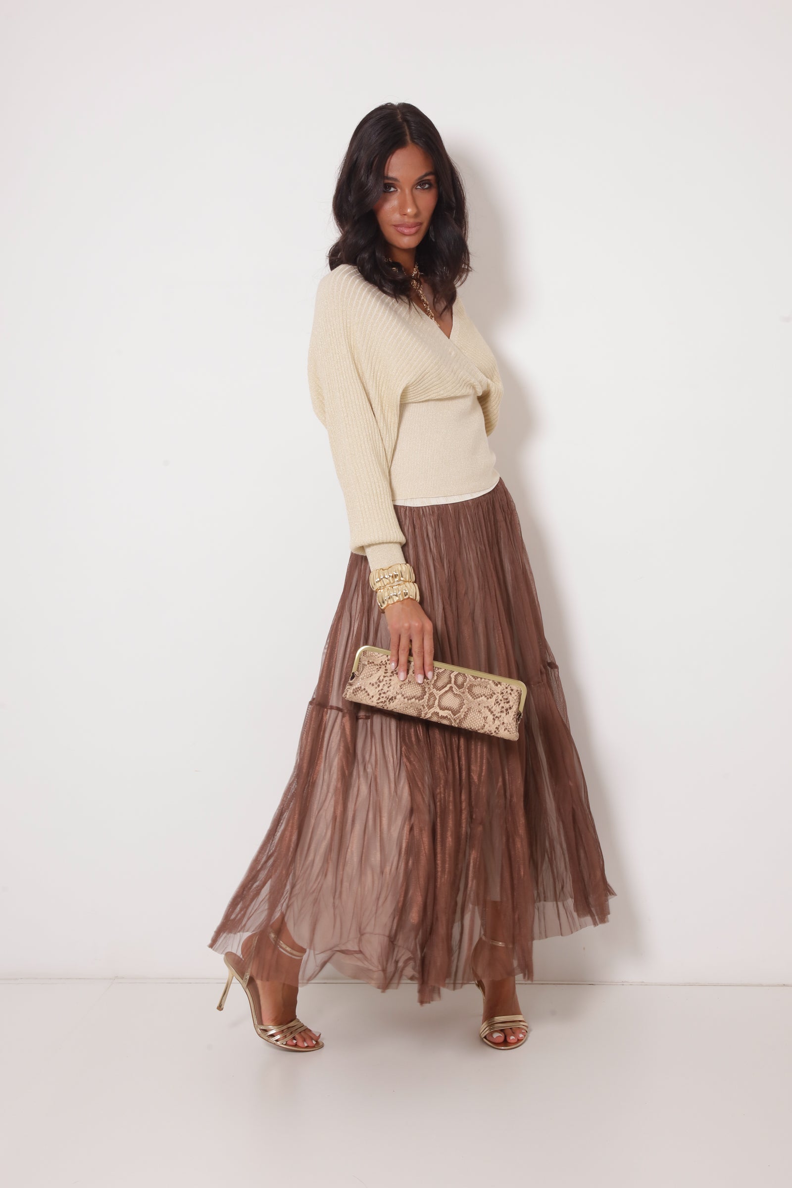 - Dettagli: elastico in vita in lurex, sottoveste, balze e tulle;