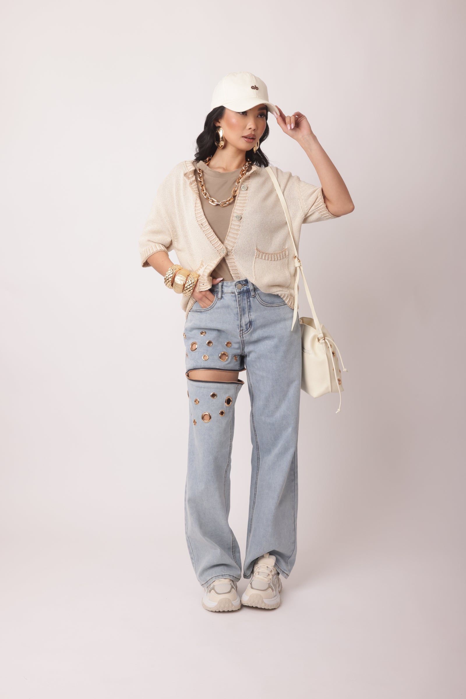 • Particolarità: borchie e cerniera ( si può staccare e da un lato diventa pantaloncino)