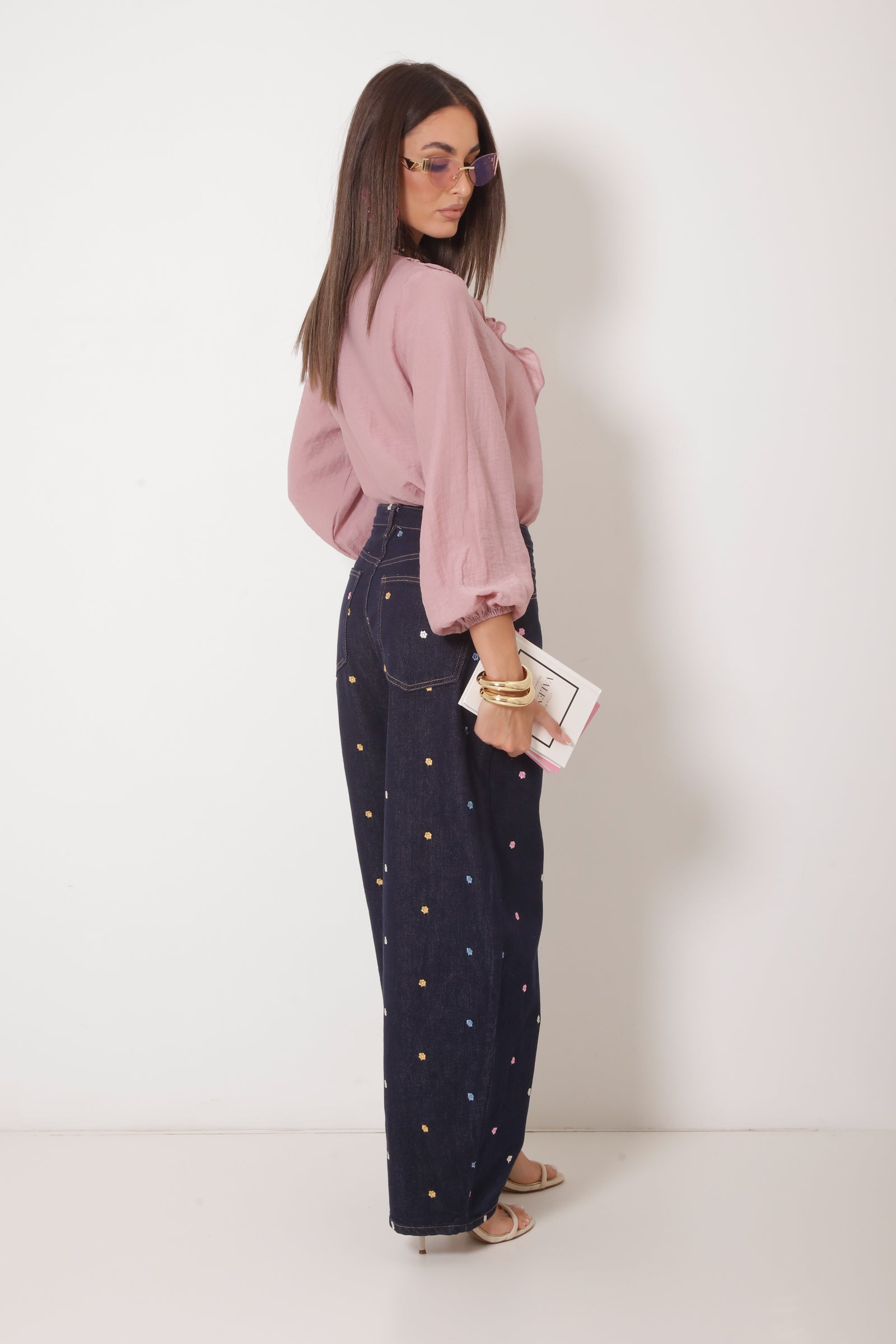 Jeans Con Fiori Denim Scuro