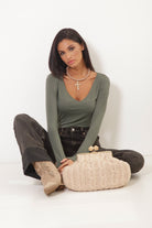 Maglia Scollo A V Slim Verde Militare