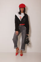 Il capo va a taglie. La modella veste una 40 (XS).
