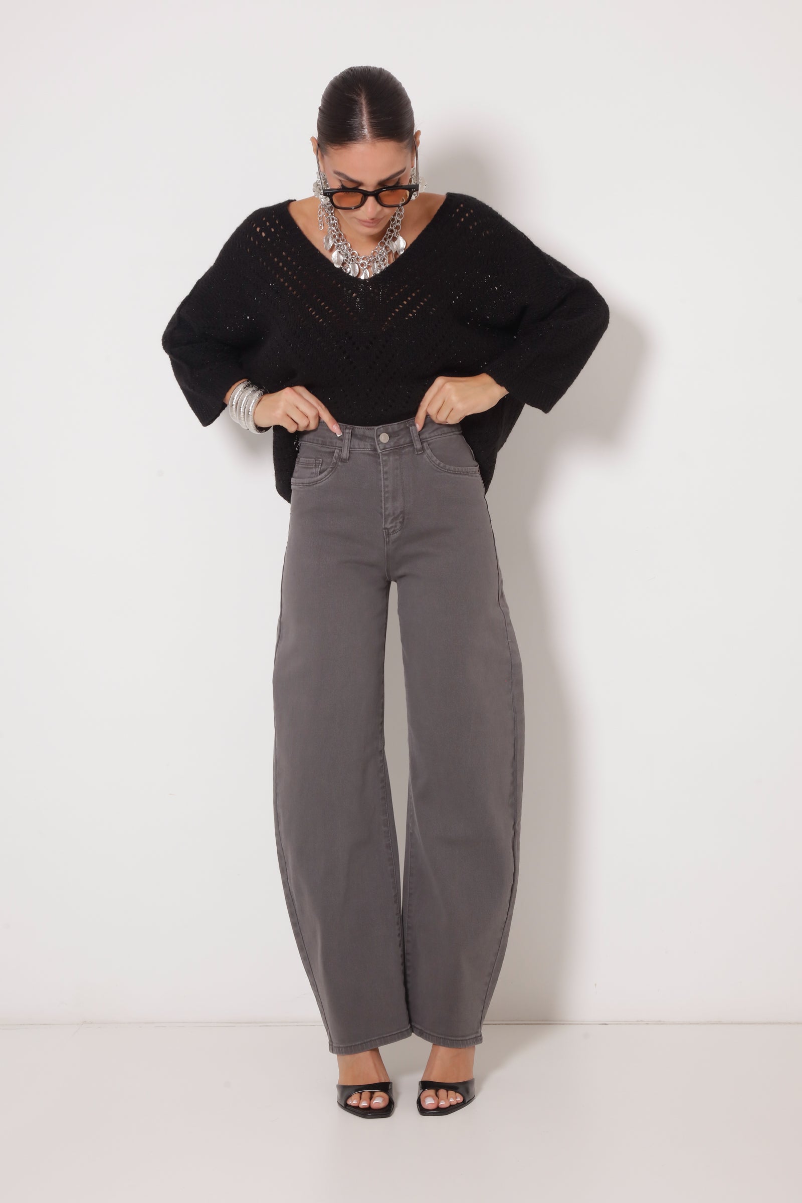 Pantalone Barrel Grigio Scuro