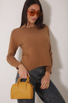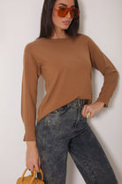 Pull Basic Con Bottoncino Tabacco