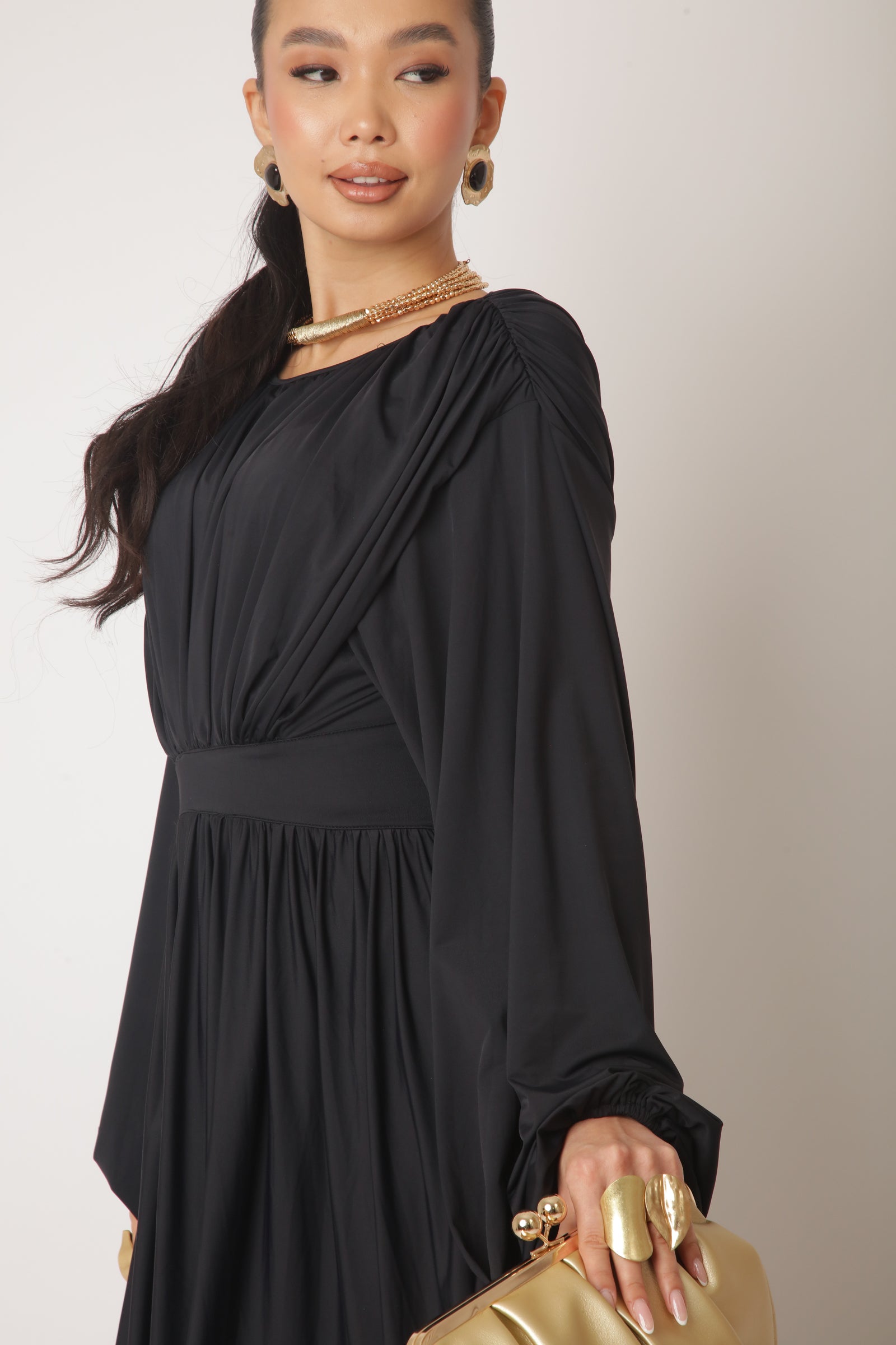 - Dettagli: plissé, taglio asimmetrico;