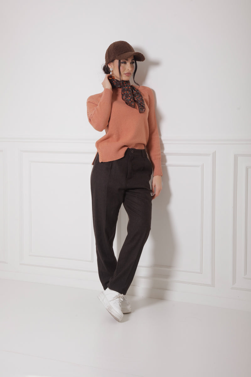 Pantalone Pinces Misto Lana Testa Di Moro