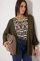 Cardigan Con Tasche Verde Militare