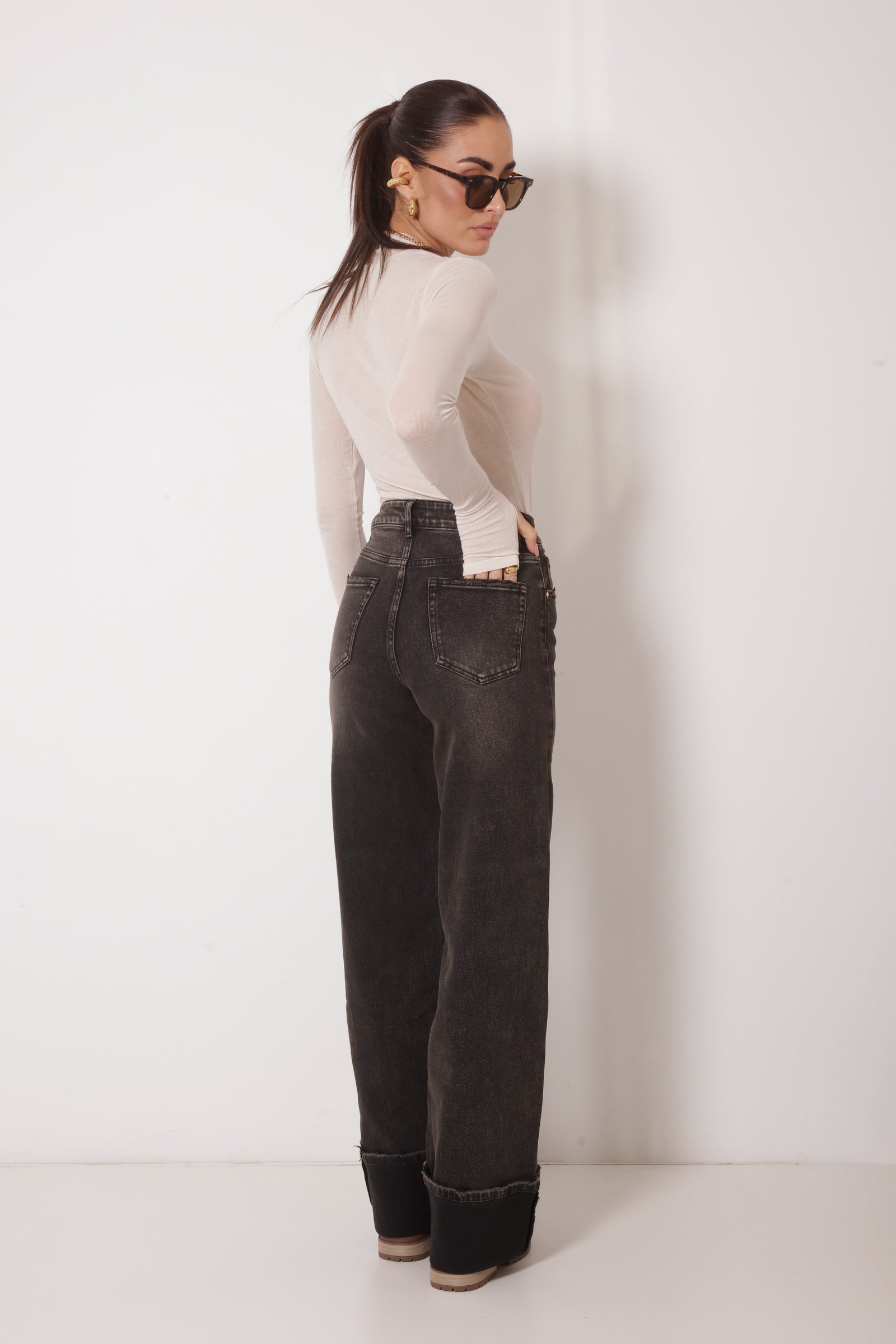 Jeans Con Piegone Denim Nero