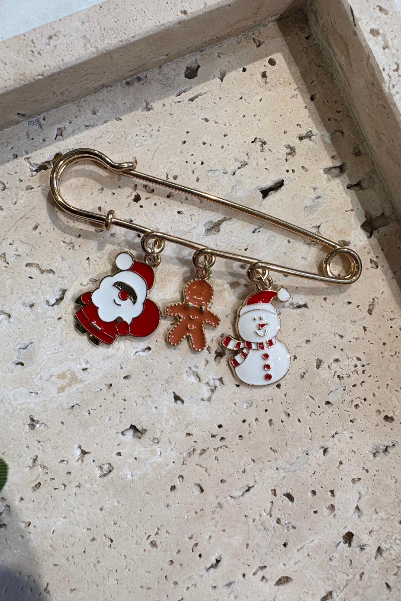 • Spilla: babbo natale, pupazzo di neve e biscotto di marzapane.