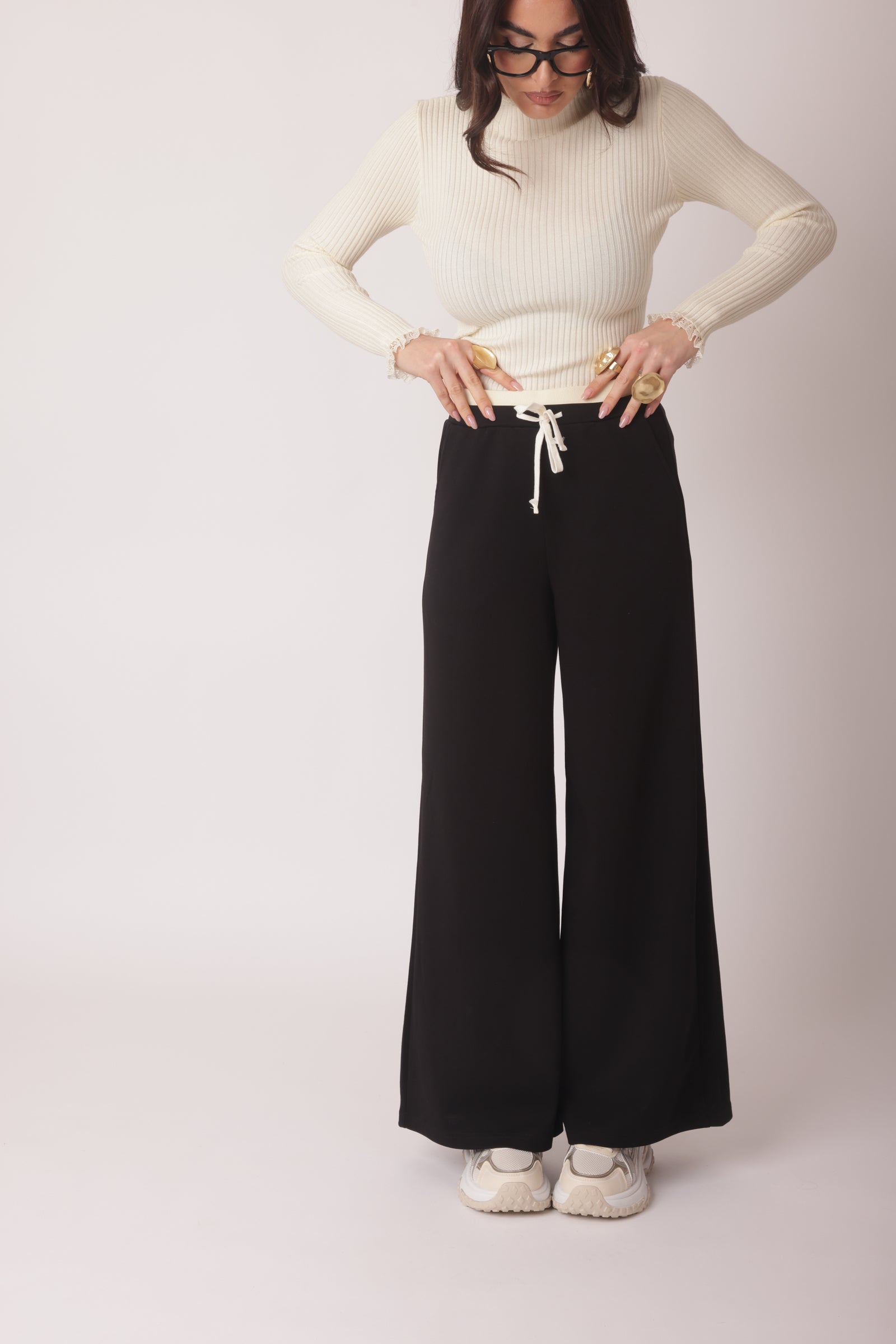 - Dettagli: tasche laterali ed elastico a contrasto;