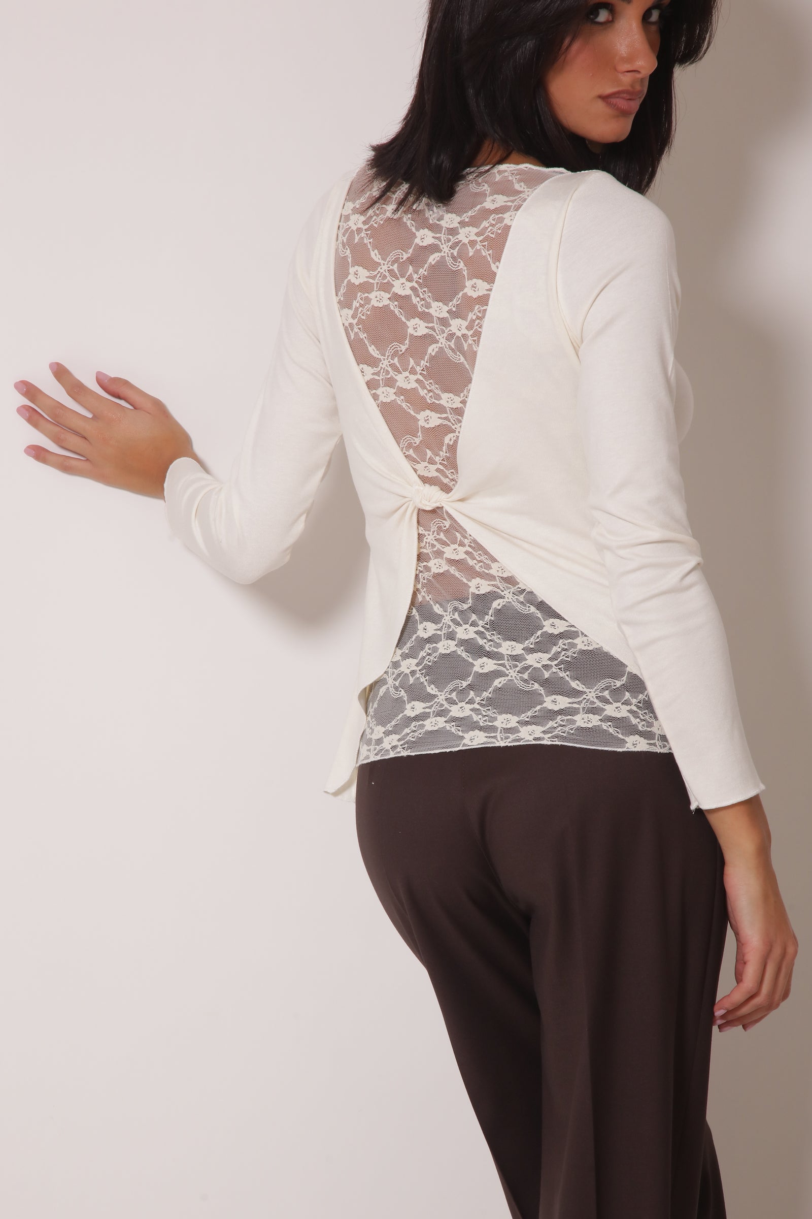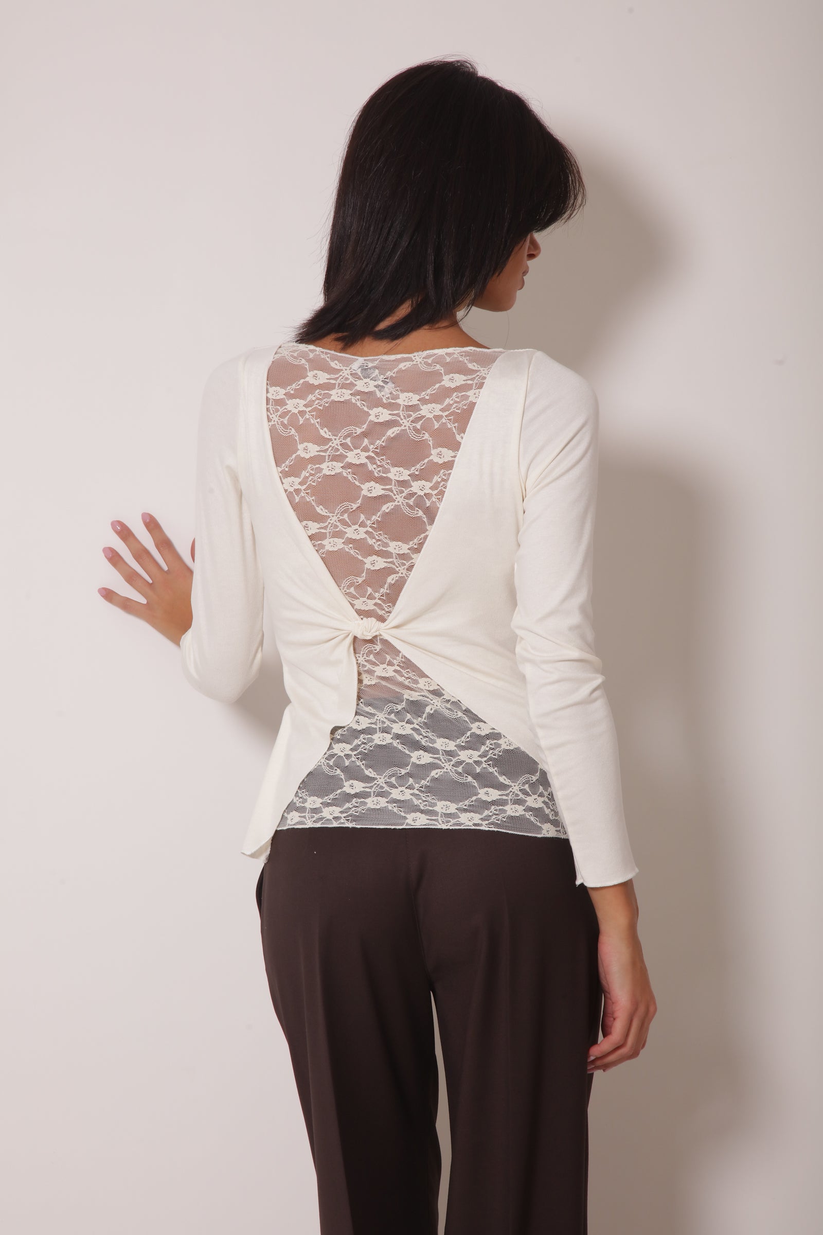 Maglia Fiocco E Pizzo Panna
