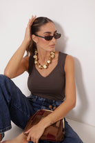 - Scollatura: scollo a V;