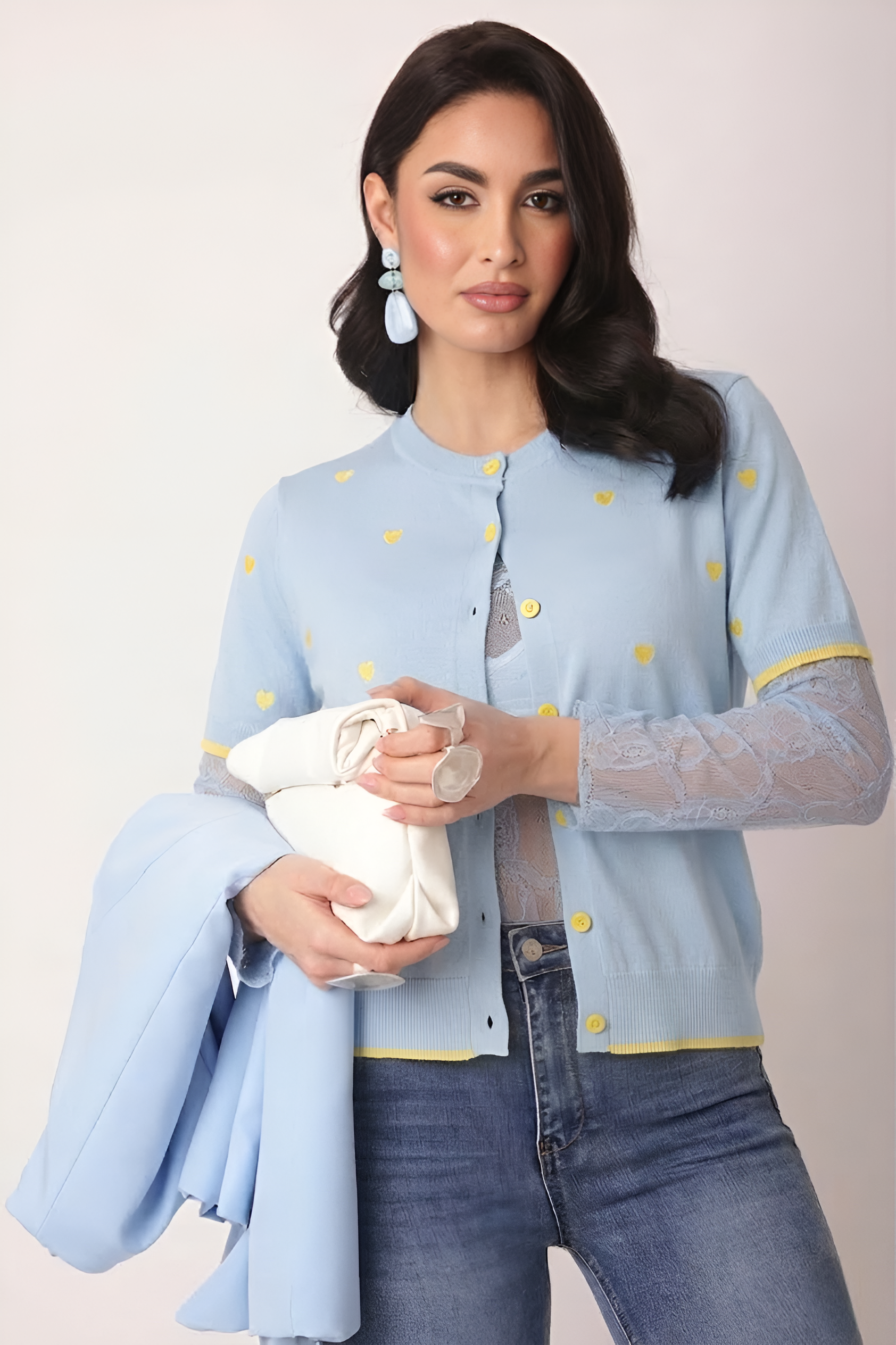 Cardigan Hearts Celeste/Giallo PREORDINA