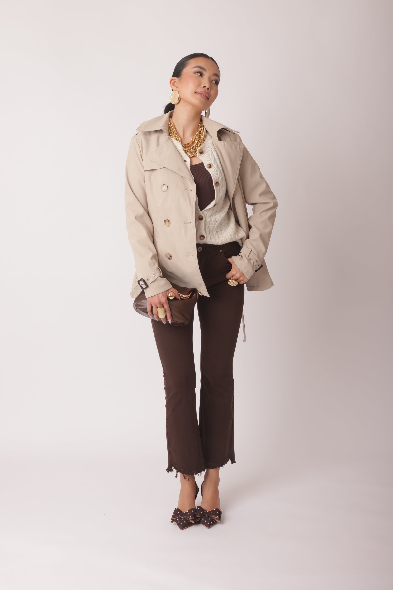 Il capo va a taglie. La modella veste una S (42).