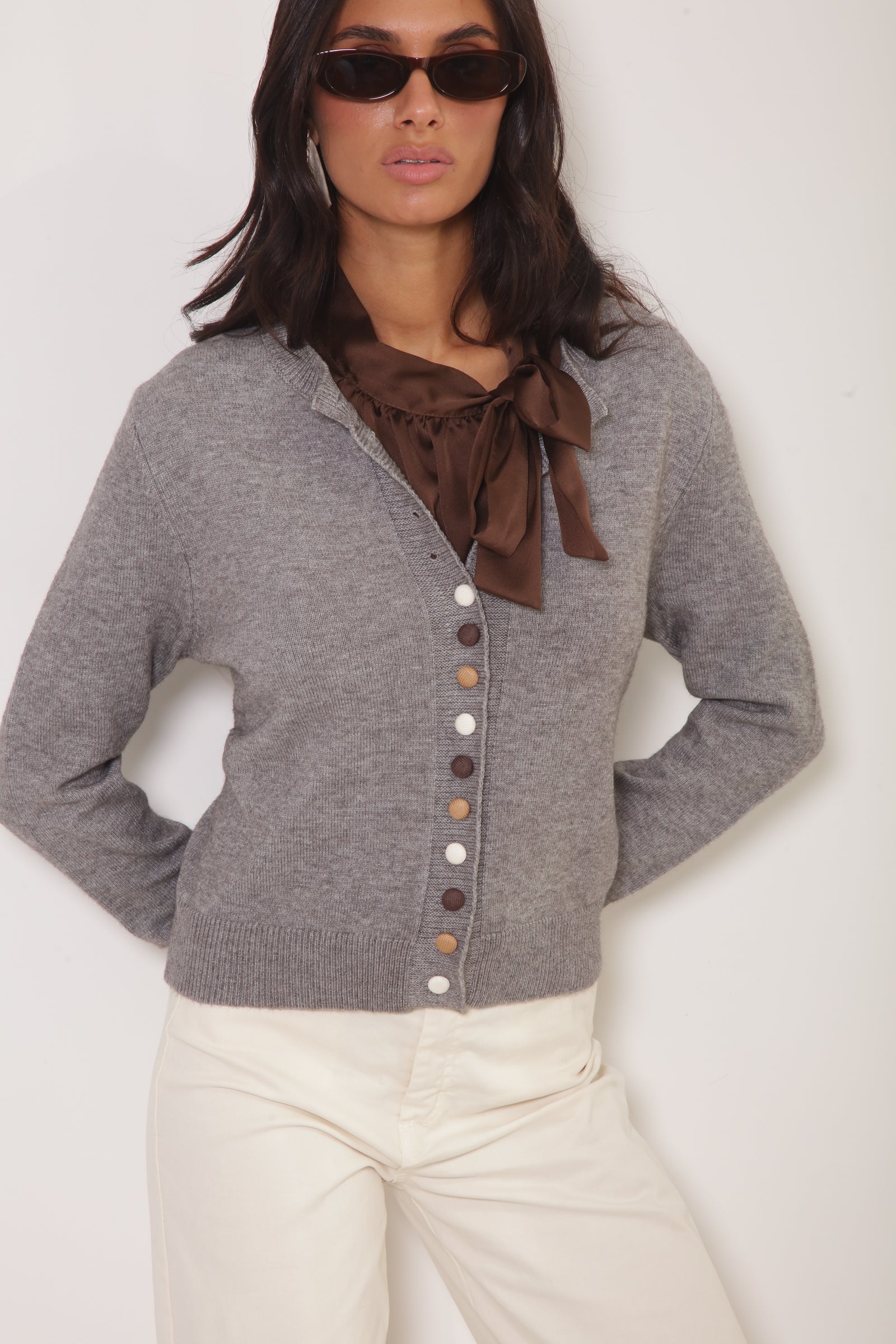 Cardigan Bottoni Colorati Grigio Chiaro PREORDINA
